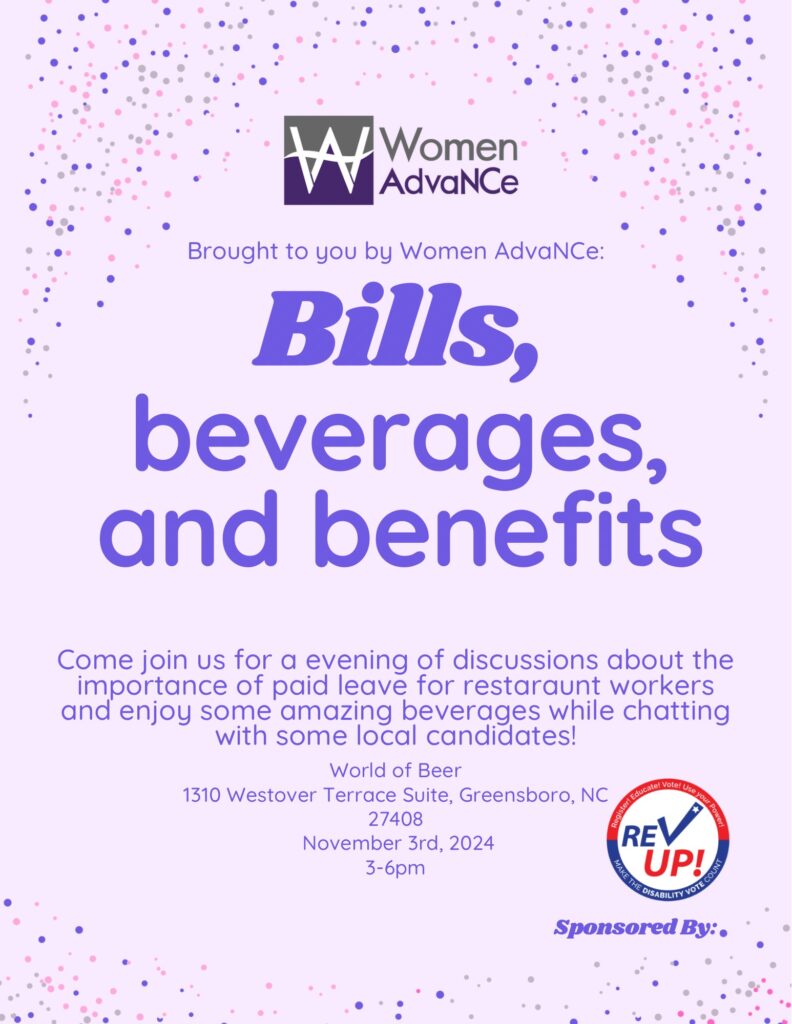 Restaurant and retail workers are the backbone of our economy. But too often, these workers face unpredictable schedules and little to no paid leave or benefits. That’s why Women AdvaNCe, RevUp NC, and the Family Cares Coalition have partnered to bring Greensboro a town hall to discuss what supportive paid leave policies look like for retail and restaurant workers in the Triad!